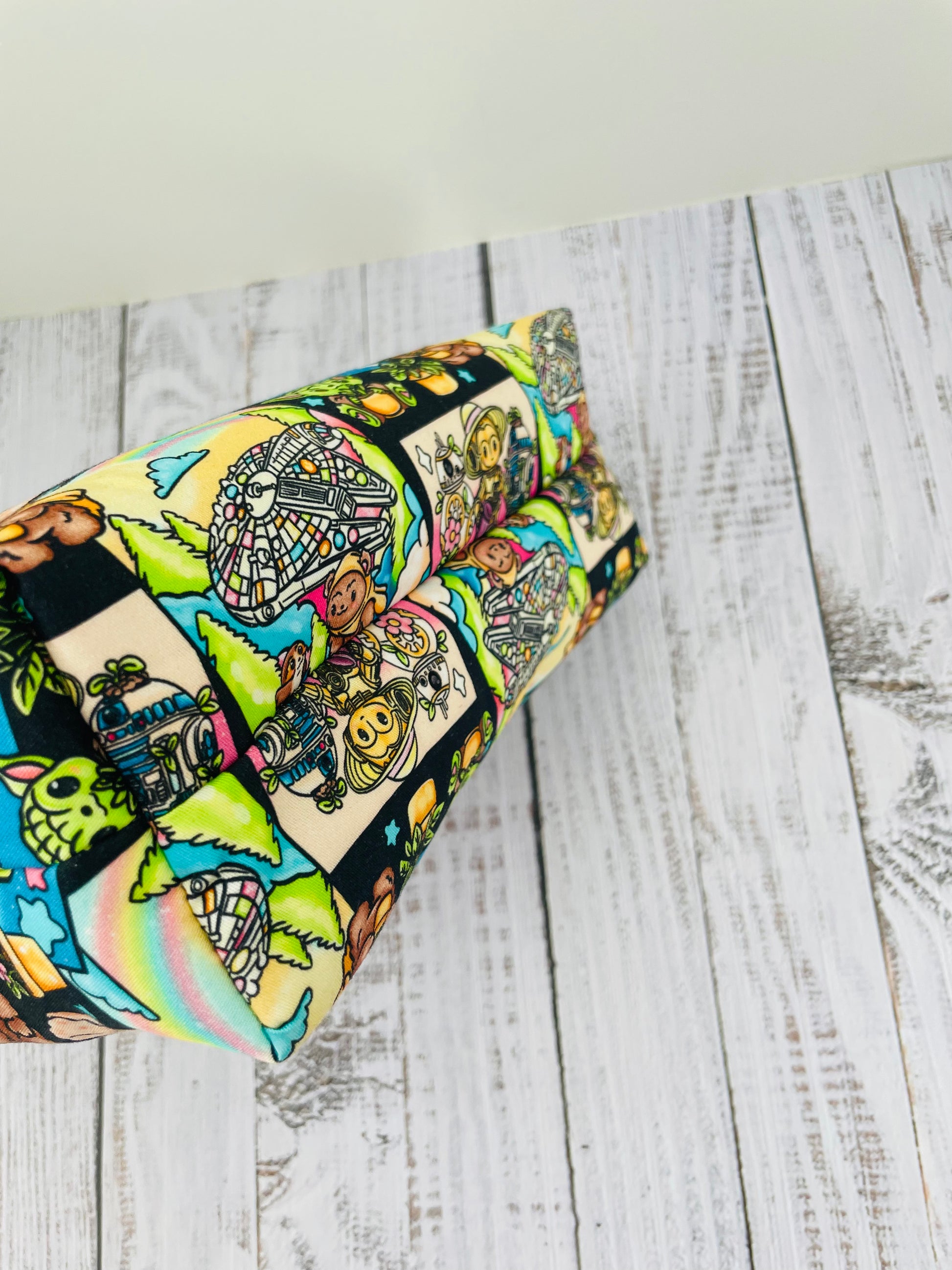 SPACE WARS COMIC STRIP ...Small wire frame plus bag...CUSTOM PRINT ....LINING IS GLOW IN THE DARK , ACTIVATED BY LIGHT
