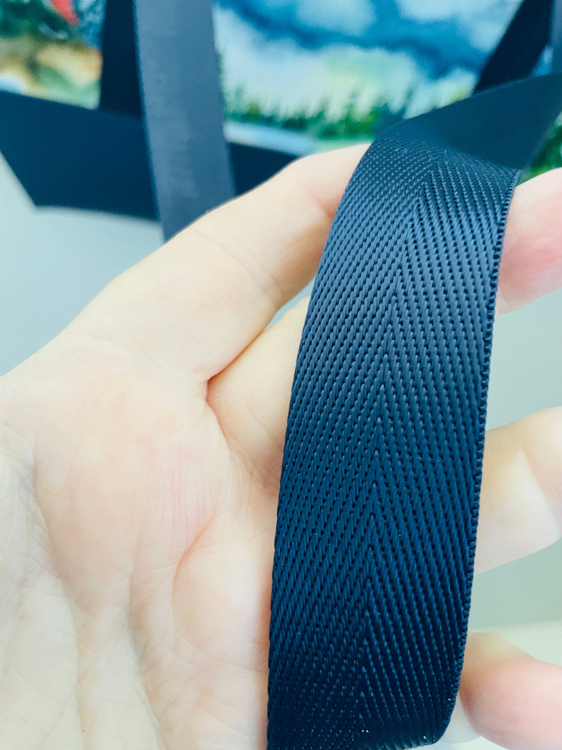 WATERCOLOUR MOUNTAINS .... large TOTE bag...CUSTOM PRINT ...NAVY SEATBELT WEBBING HANDLES AND FAUX LETHER BOTTOM (Copy)