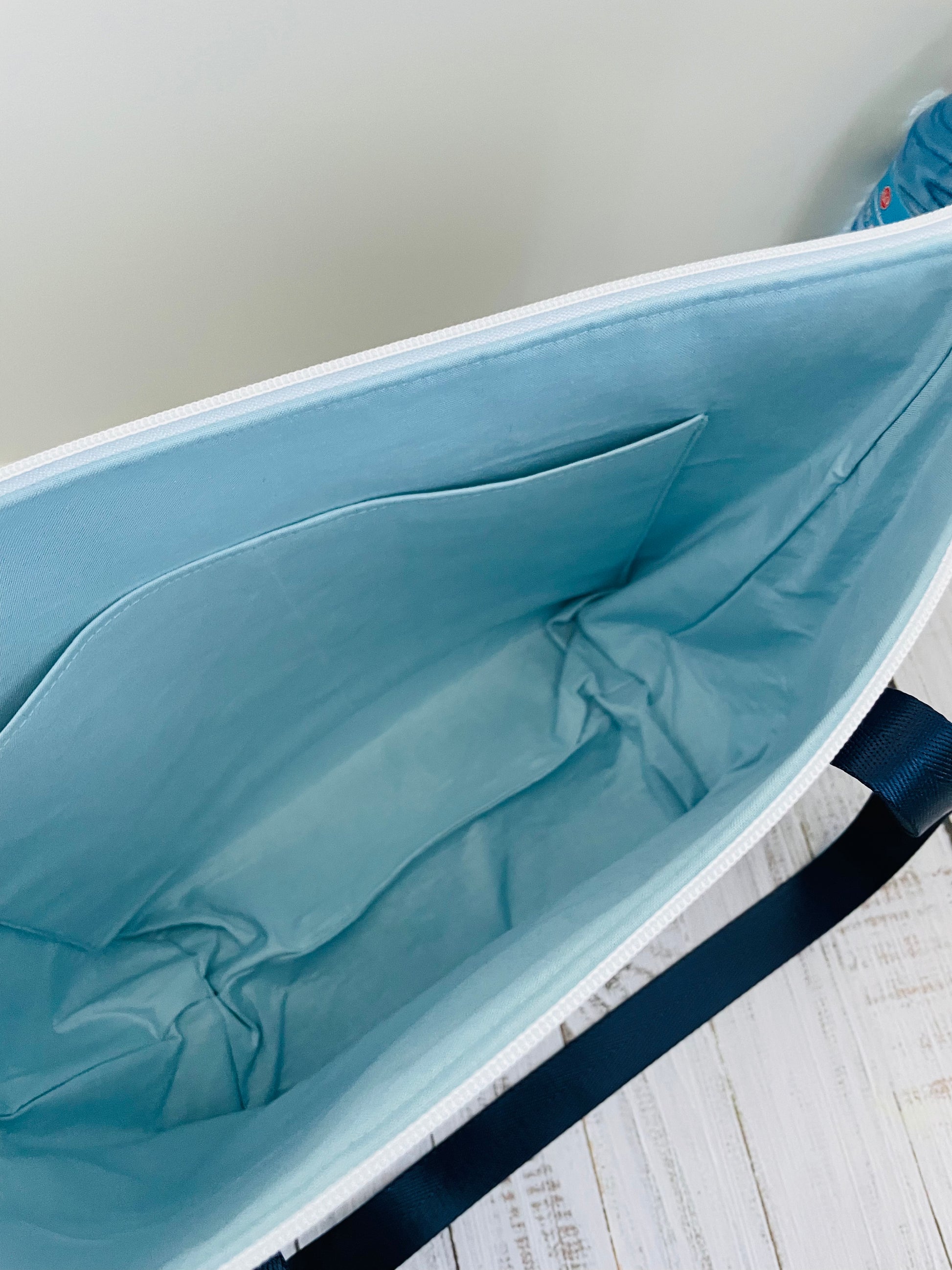 Made from custom printed fabric , this bag fully lined. It opens wide so you can use it as a basket, and then it can be zipped closed to keep your project safe.