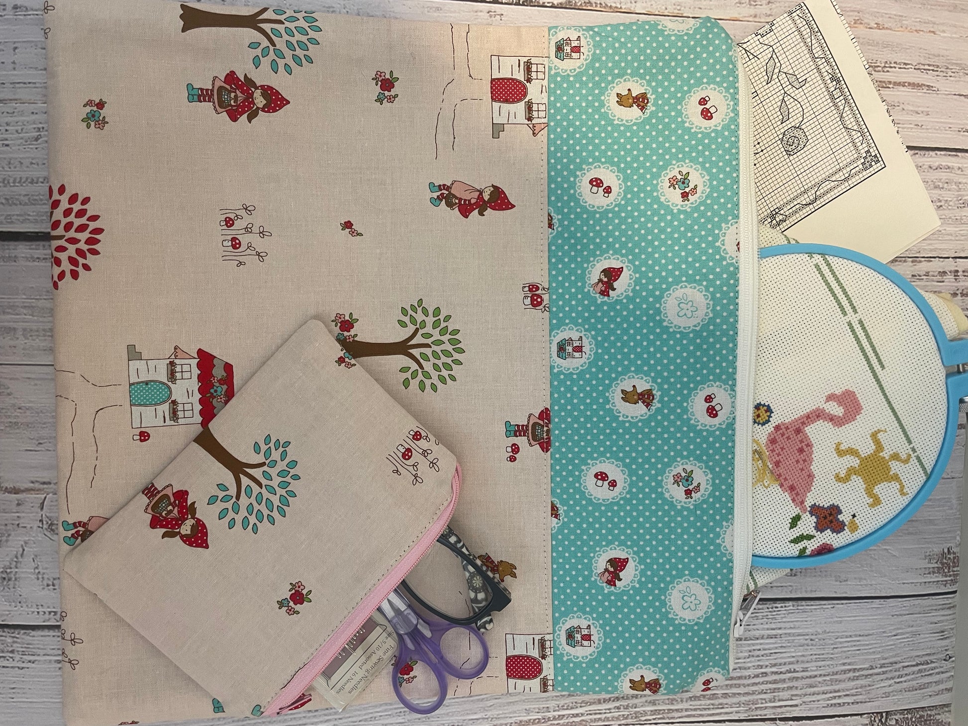 A perfect Stitching bag for keeping any project, stitching, quilting, wool appliqué, etc organized! …handmade with care , zipper closure , and GS zipper pull
